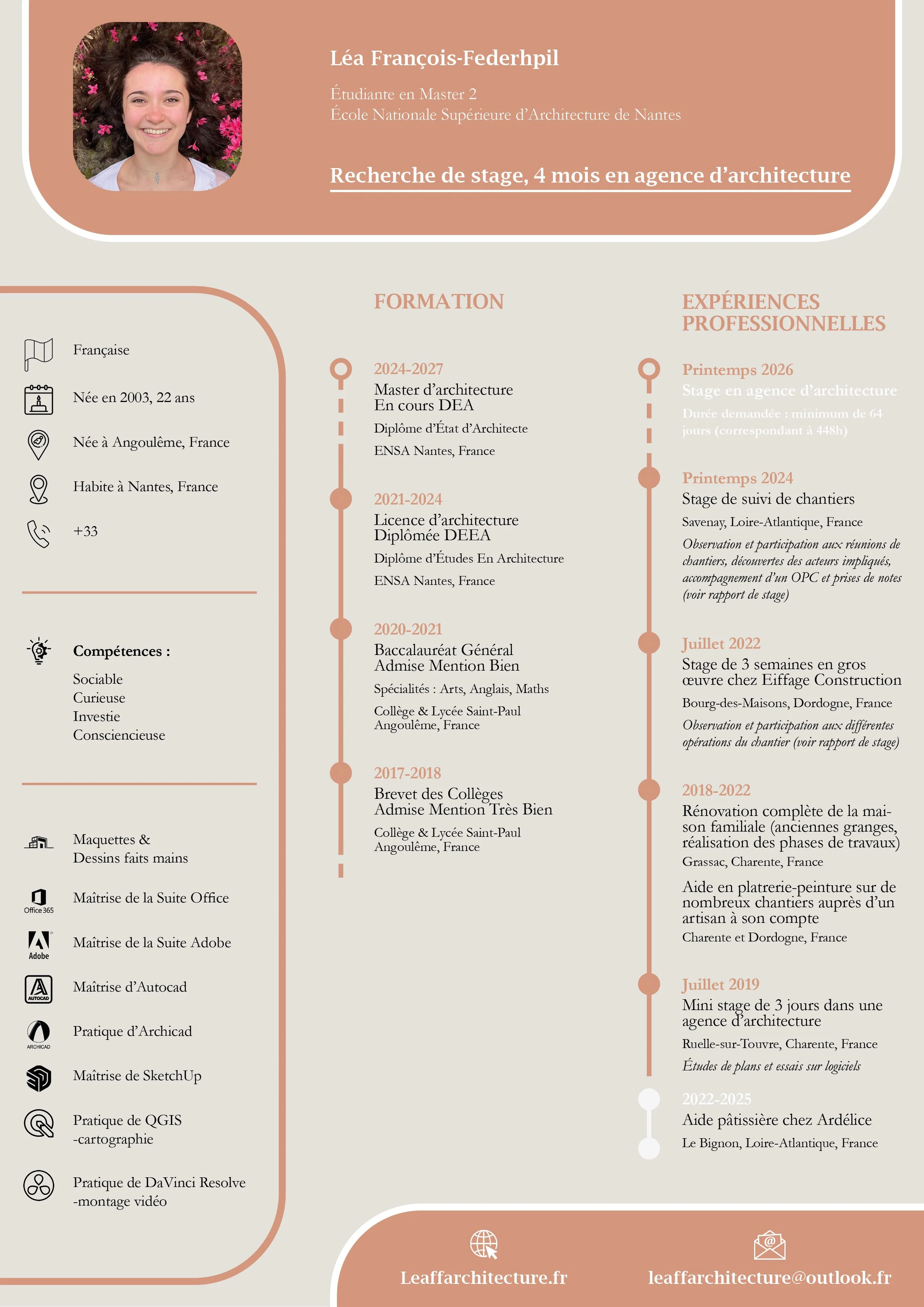 Quant aux stages et au mémoire, j’ai aussi souhaité les partager ; pour moi, la formation à l’architecture n’est rien sans tous les enseignements “connexes” à ceux du projet. Ils m’ont en effet permis d’apprendre tout autant que les studios de projets.
